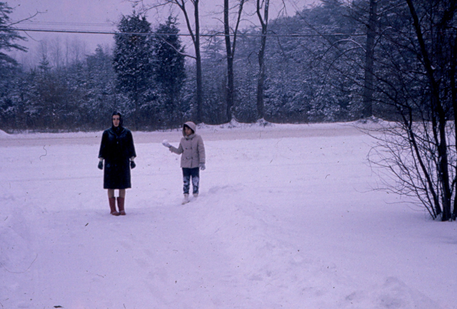 I’m 11 years old, my sister, 18. As she gazes toward the camera, I sneak up on her with a snowball. The scarf wrapped around her head might obscure her peripheral vision, and I’m dumb enough to believe she’s unaware of my intention.