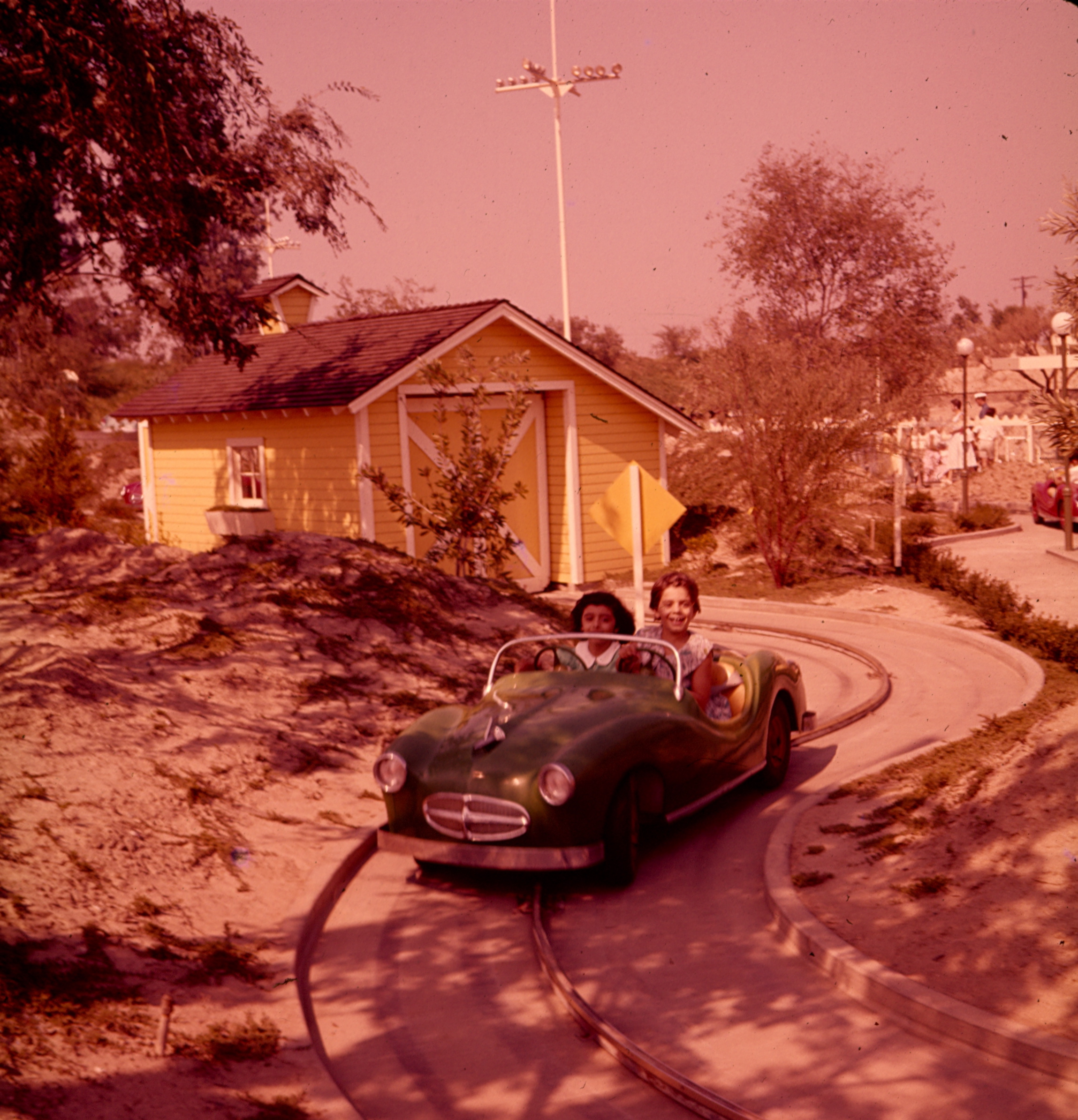 It’s the summer of 1957 at Disneyland with an assortment of family; sister, cousins, aunts, uncles and parents. My cousin Vicky and I are joyriding, the breeze is blowing through our kitchen haircuts and we sport happy smiles as we both steer the car on the track. It’s a harbinger to the time 11 years later, when on her 18th birthday my cousin’s parents will present her with her first car: a 1950 bulky burgundy Dodge, similar to the car in the photo, but more like a tank than a cool convertible. It was 1968, and Vicky’s “new car” was 18 years old, but it had wheels and she loved it, as did the rest of us cousins, who had no other mode of transportation but the LA city bus and our sore feet.