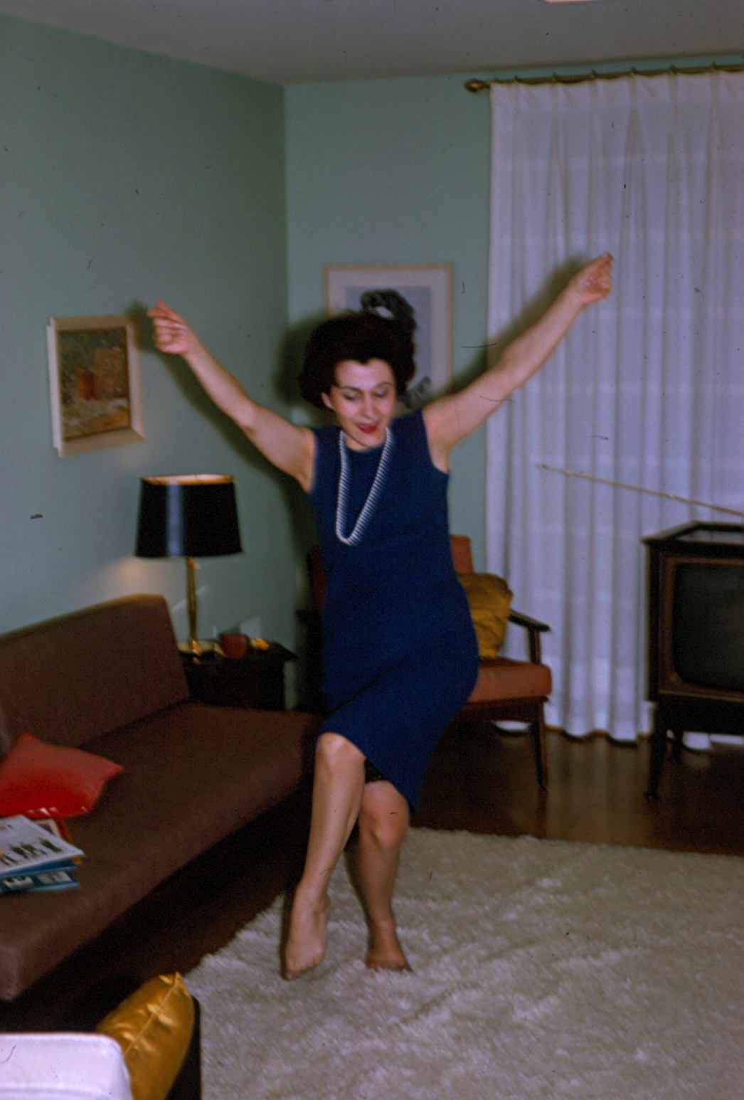 At my parents’ frequent parties, while guests were treated to an assortment of canned things on crackers and a steady flow of liquid treats, it wasn’t unexpected to suddenly hear the wailing tones and primal rhythms of Greek clarinets and bouzoukis as martini-bolstered Mom surprised the gathering of staid diplomats and steely policy-makers with her fierce version of a belly-dance.