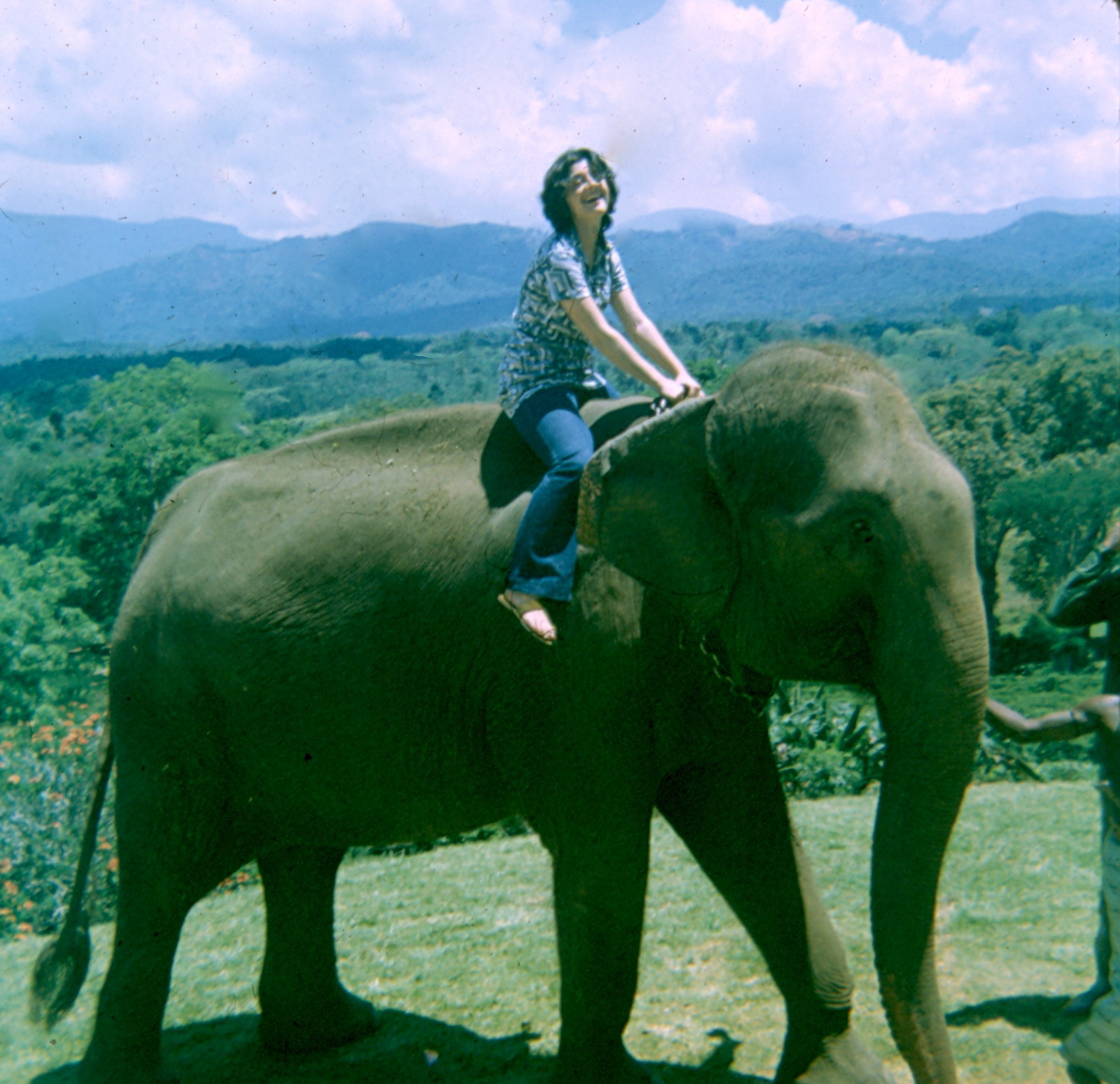 Encouraged by the happy chatter and exotic meal shared by the matrons at the friendly table last night, the joyful young miss on the elephant, remembering long ago Ceylon with great fondness, made a brief appearance. It’s so good to know that Laughing Elephant Girl is still with me.